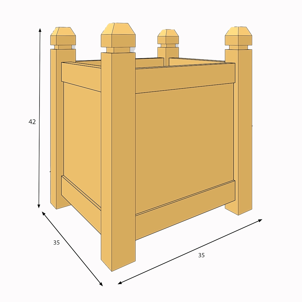 Each Crusader Planter is crafted to accommodate a standard 11L (25cm square pot), or you can opt for our custom plastic liners that protect the wood and extend the life of your planter.